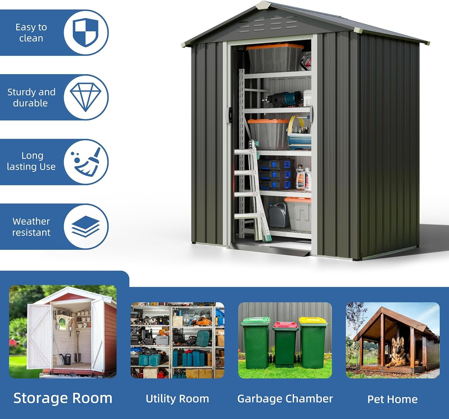 Sheds – JY QAQA 5×3 FT Metal Outdoor Garden Storage Shed
